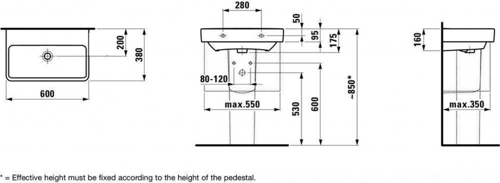 Umývadlo bez otvoru pre batériu, bez prepadu a bez otvoru v odtokovom kanáli
