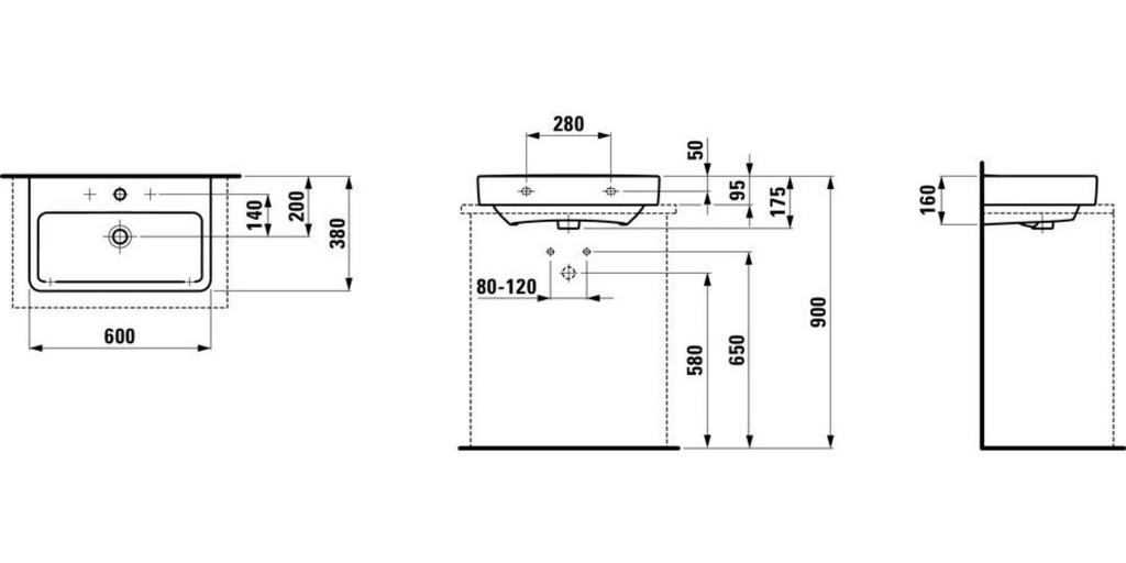Umývadlo s jedným otvorom pre batériu, bez prepadu a bez otvoru v odtokovom kanáli.