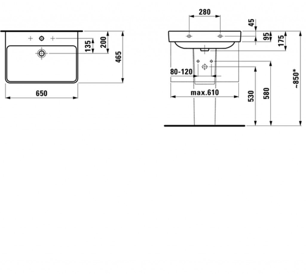 Umývadlo s jedným otvorom pre batériu, s prepadom