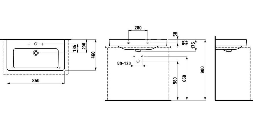 Umývadlo s jedným otvorom pre batériu, s prepadom.