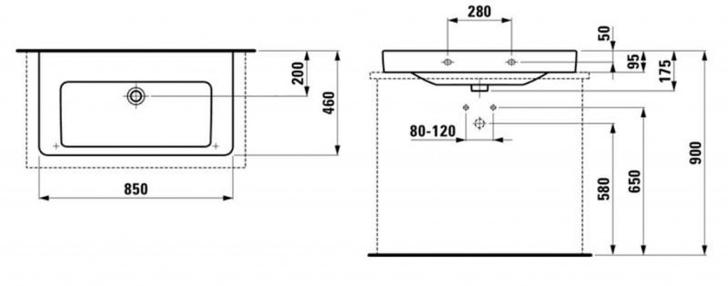 Umývadlo bez otvoru pre batériu, s prepadom.