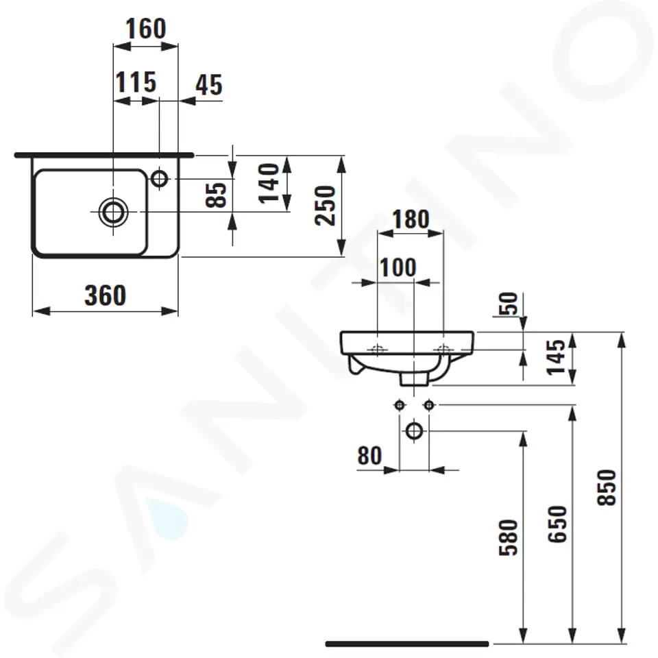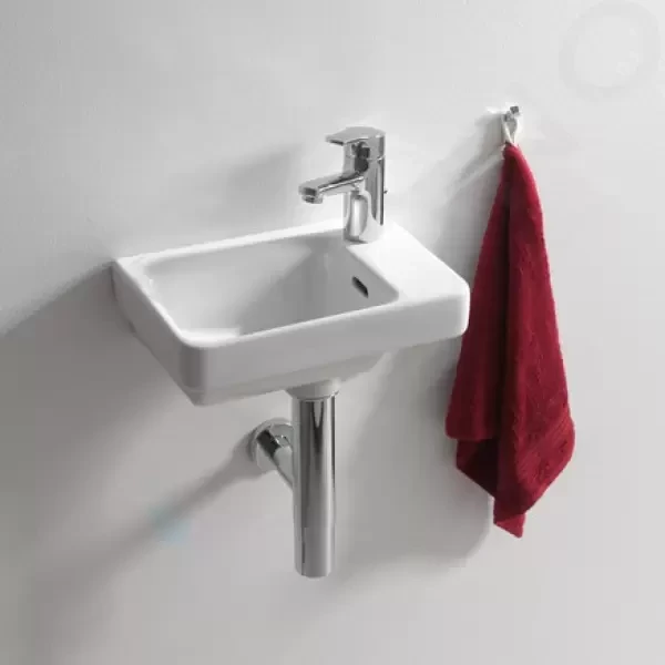 Asymetrické umývadielko s jedným otvorom pre batériu, s prepadom