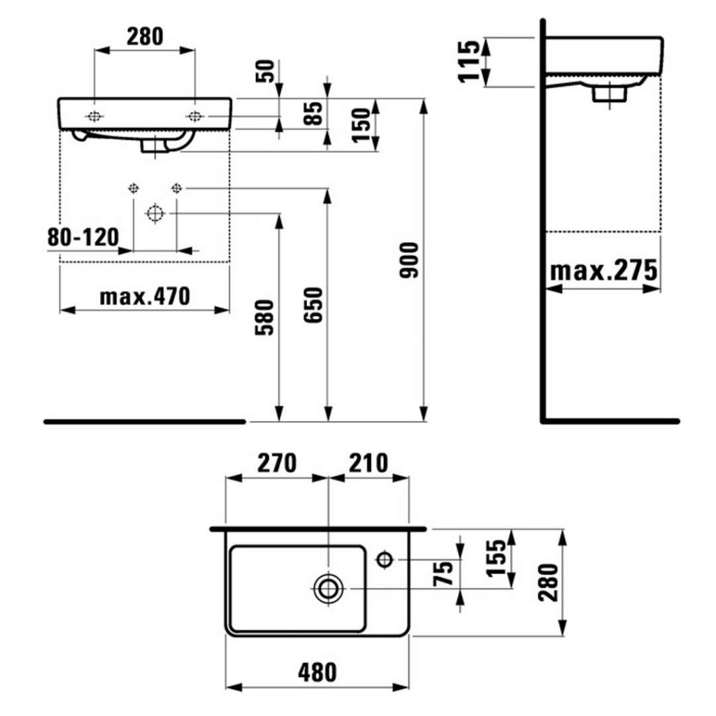 Asymetrické umývadielko pravé s jedným otvorom pre batériu, s prepadom