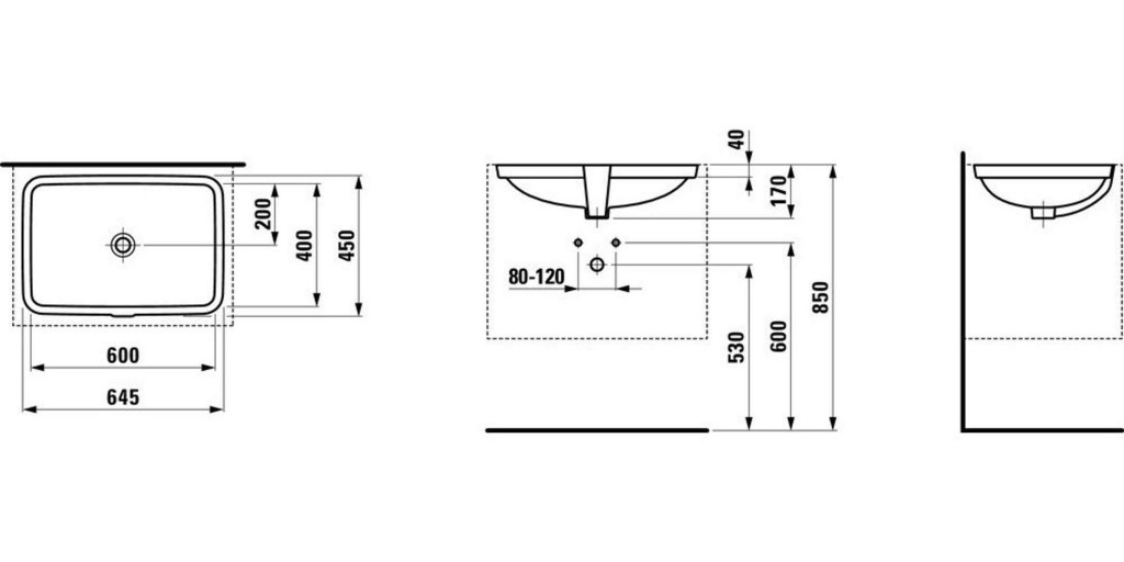 Umývadlo bez otvoru pre batériu, s prepadom.
