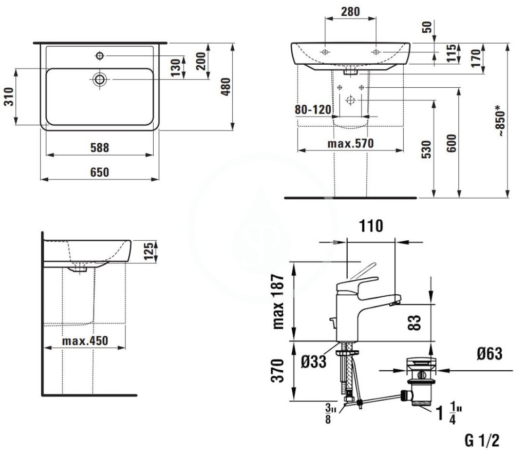 - vrátane montážneho príslušenstva, sady pre ukotvenie umývadla M10 x 140 mm