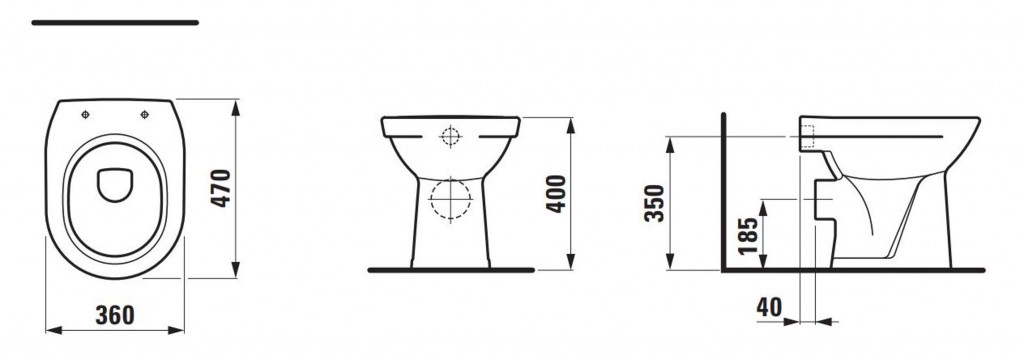 - inštalácie: usadením na podlahu, pre závesnú splachovaciu nádržku