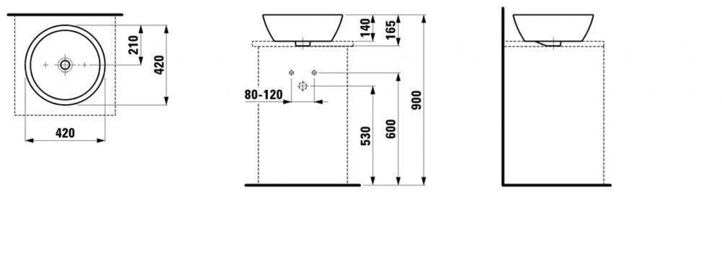 Umývadlová misa bez otvoru pre batériu, s prepadom.