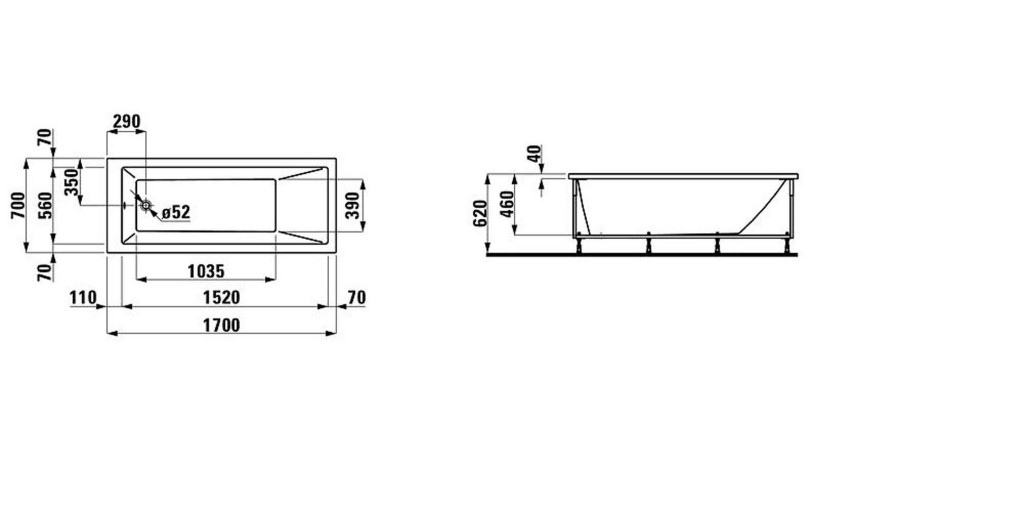 - krycie čelné a bočné panely podľa umiestnenia vane je potrebné objednať samostatne