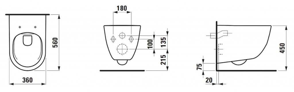 - inštalácie: zavesením na stenu, pre výšku 450 mm