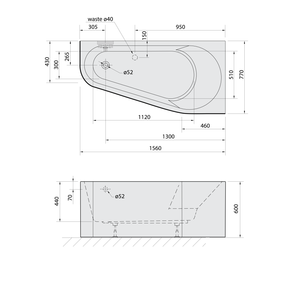 POLYSAN - PROJEKTA R MONOLITH asymetrická stojaca vaňa 156x77x60cm, bielá (21111M)