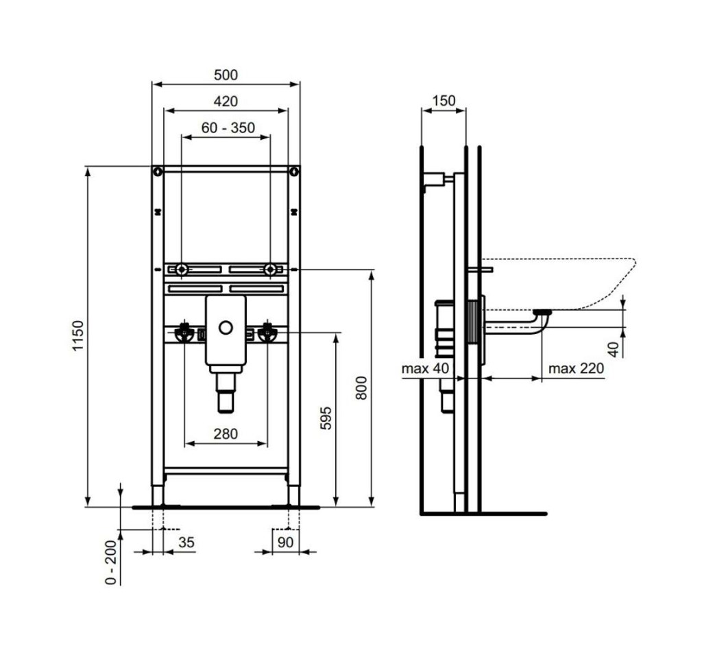 - pre inštaláciu pred pevnú stenu alebo medzi dve ľahké sadrokartónové priečky