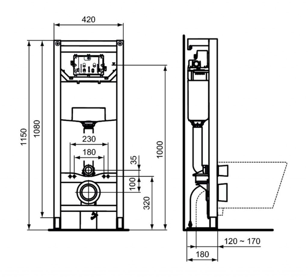 - pre závesné toalety s montážnou rozstupom 180 alebo 230 mm