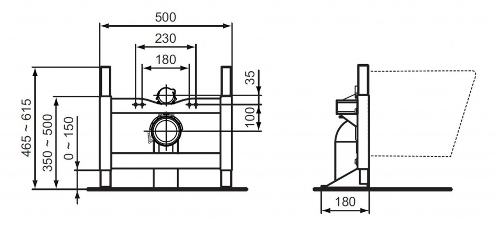 - pre závesné toalety s montážnou rozstupom 180 alebo 230 mm