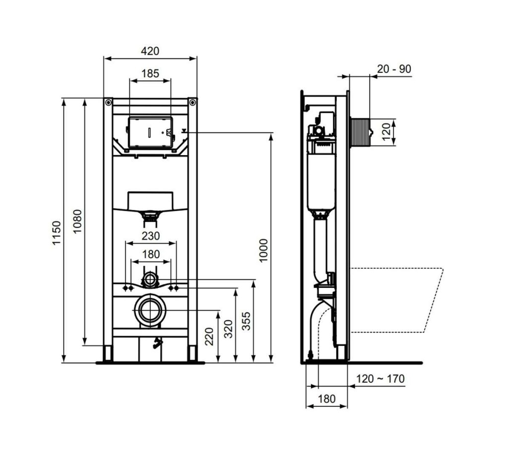 - inštalácia pred pevnú stenu alebo do ľahkej priečky zo sadrokartónu