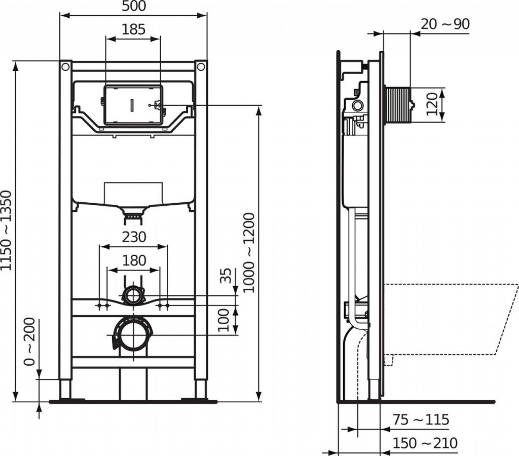 - pre závesné WC s montážnymi rozmermi 180 alebo 230 mm