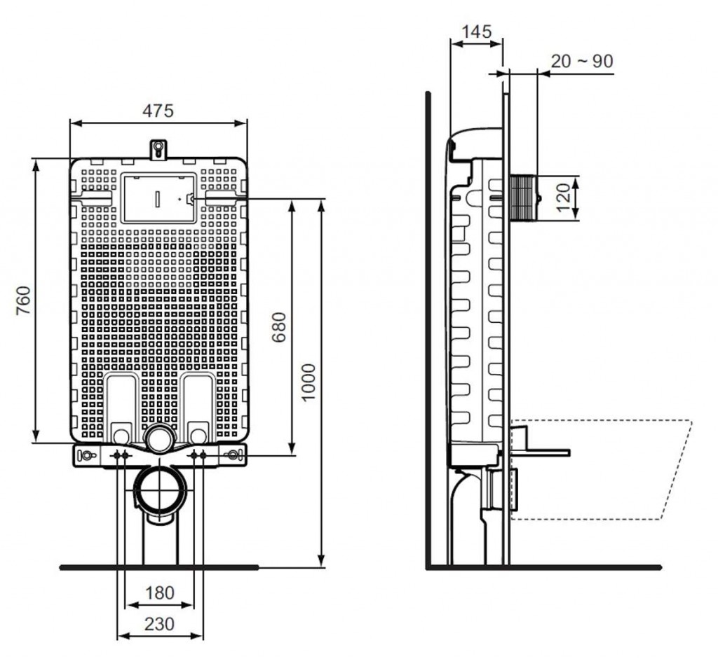- pre závesná WC s montážnymi rozmermi 180 alebo 230 mm