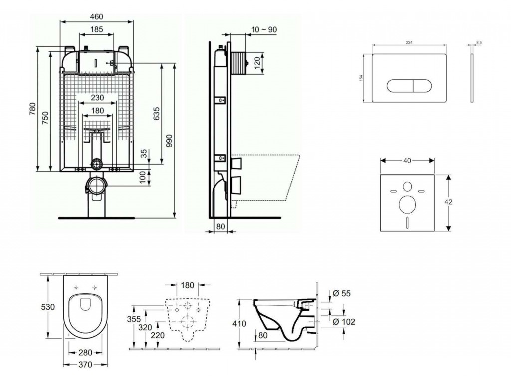 - predstenovú odľahčenú inštaláciu Ideal Standard ProSys 80M pre závesné WC