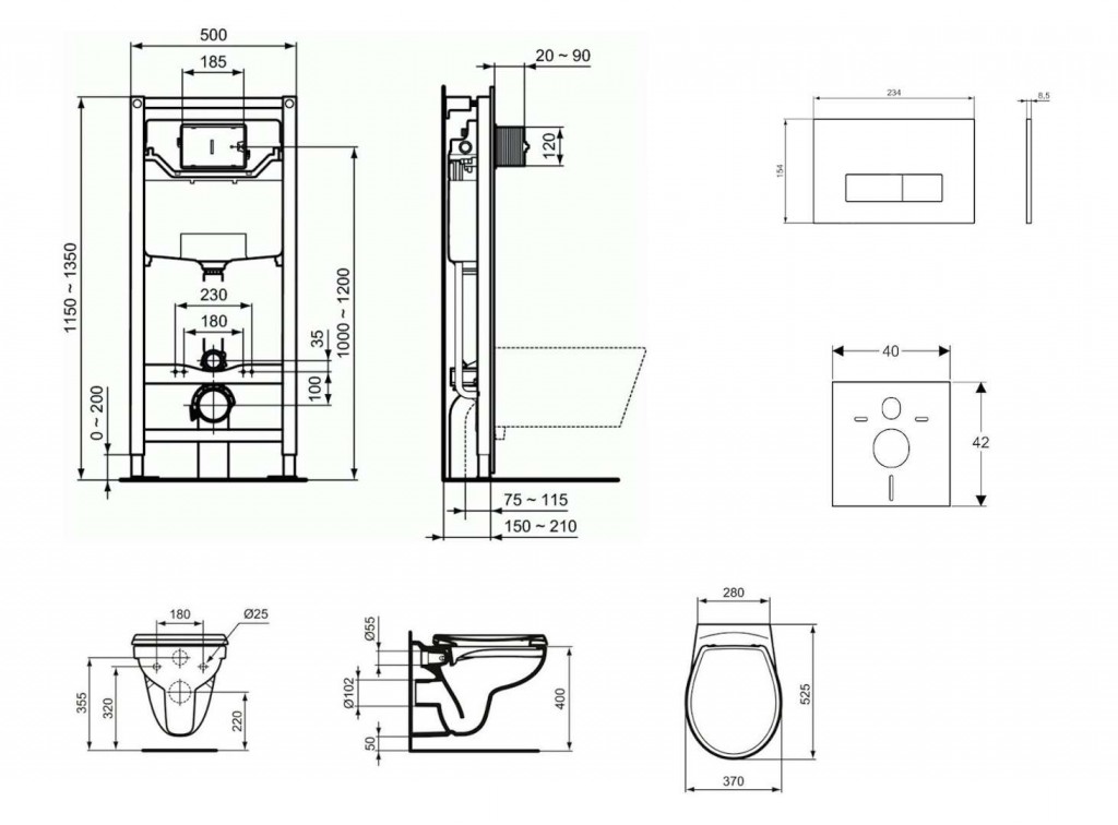 - predstenovú inštaláciu Ideal Standard ProSys 120M pre závesné WC