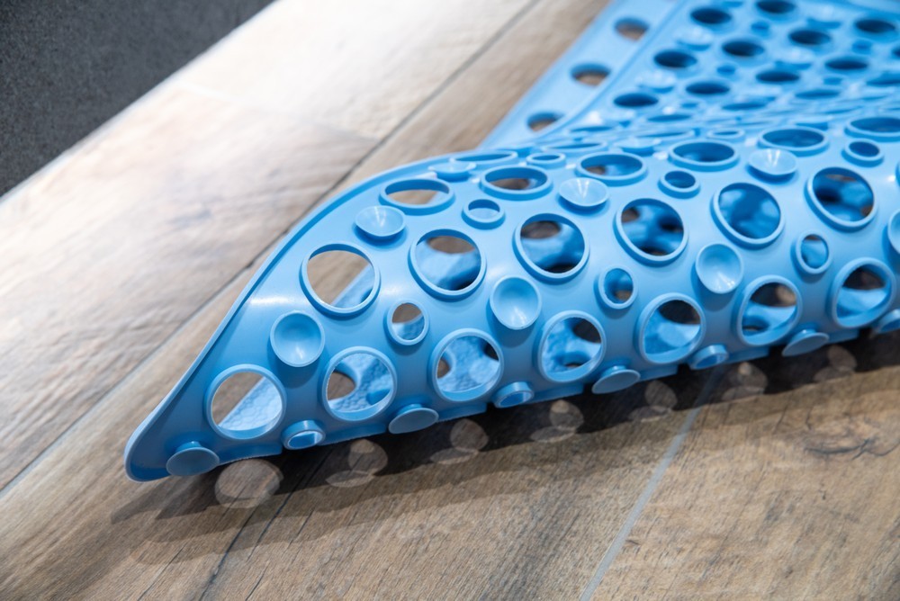 Obdĺžniková, protišmyková kúpeľňová predložka v modrej farbe. Má špeciálne prísavky, ktoré zabraňujú jeho kĺzaniu po povrchu. Tento model kúpeľňovej predložky vyniká od ostatných tradičných predložiek svojou výškou a špeciálnym dizajnom, vďaka čomu je veľmi príjemný na používanie. Podlhovastý tvar sa perfektne hodí do vane. Kúpeľňová predložka sa veľmi ľahko čistí. Čistiť na 30 stupňov, nežehliť, chemicky nečistiť, nebieliť, nesušiť v sušičke.