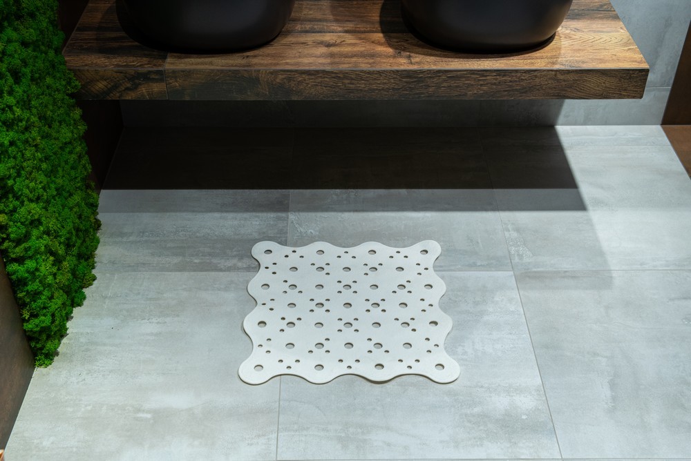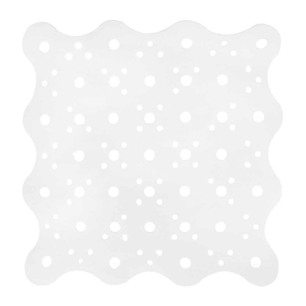 Protišmyková kúpeľňová predložka v bielej farbe. Štvorcový tvar bude ideálny pre sprchovú vaničku. Na spodnej strane sprchovej rohože sa používajú špeciálne prísavky, ktoré ju pripevňujú k zemi. Kúpeľňová predložka sa veľmi ľahko čistí. Čistiť na 30 stupňov, nežehliť, chemicky nečistiť, nebieliť, nesušiť v sušičke.