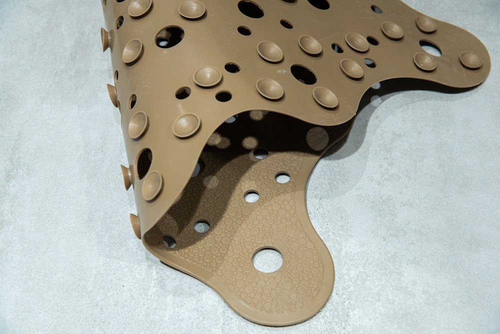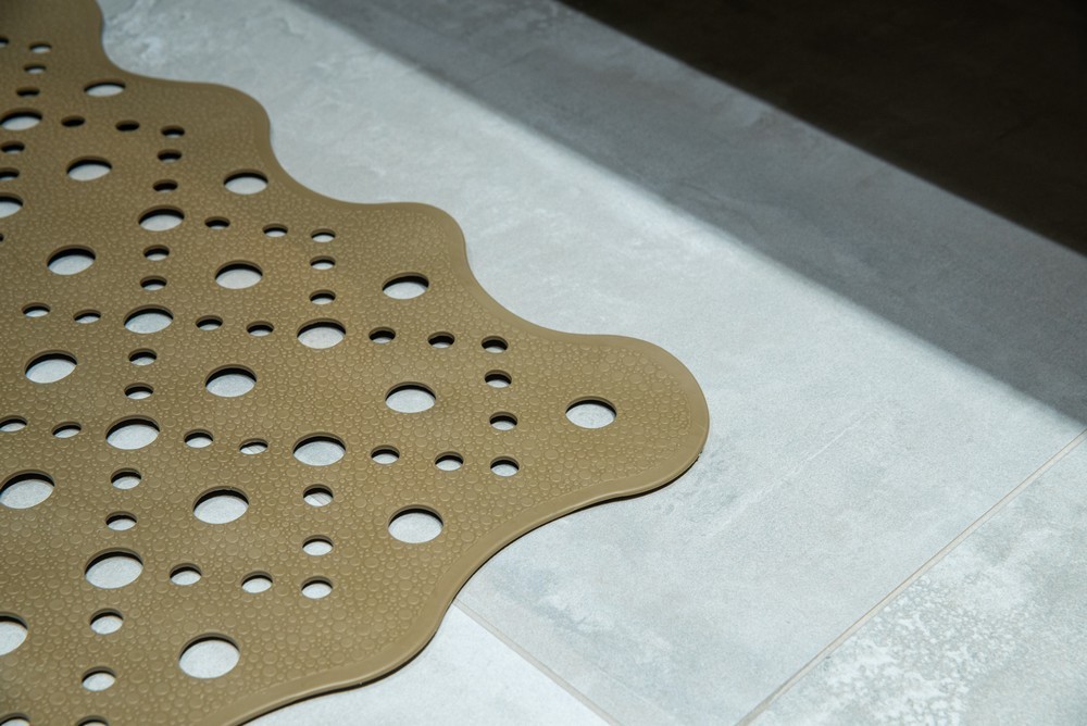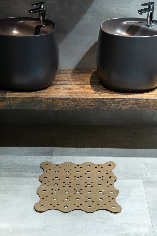 Protišmyková kúpeľňová predložka v hnedej farbe bude štvorcový tvar ideálny pre sprchovú vaničku. Na spodnej strane sprchovej rohože sa používajú špeciálne prísavky, ktoré ju pripevňujú k zemi.