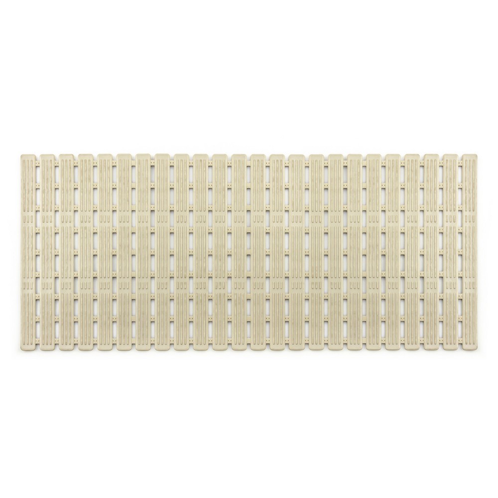 Protišmyková podložka podlhovastého tvaru vyrobená z kombinácie dvoch funkčných materiálov: PP a TPE. Skladá sa z pevných lamiel v elegantnej béžovej farbe a je tak ideálnym doplnkom do moderných interiérov. Podložka perfektne funguje na rovnom povrchu a poskytuje ochranu podlahy pri vystupovaní z vane alebo sprchy. Vybavená prísavkami, ktoré ho bezpečne prichytia k podlahe, zaručuje stabilitu a bezpečnosť užívateľa. Kúpeľňová predložka meria 91 cm na dĺžku a 40 cm na šírku. Prať na 30 stupňov, nežehliť, chemicky nečistiť, nebieliť, nesušiť v sušičke.