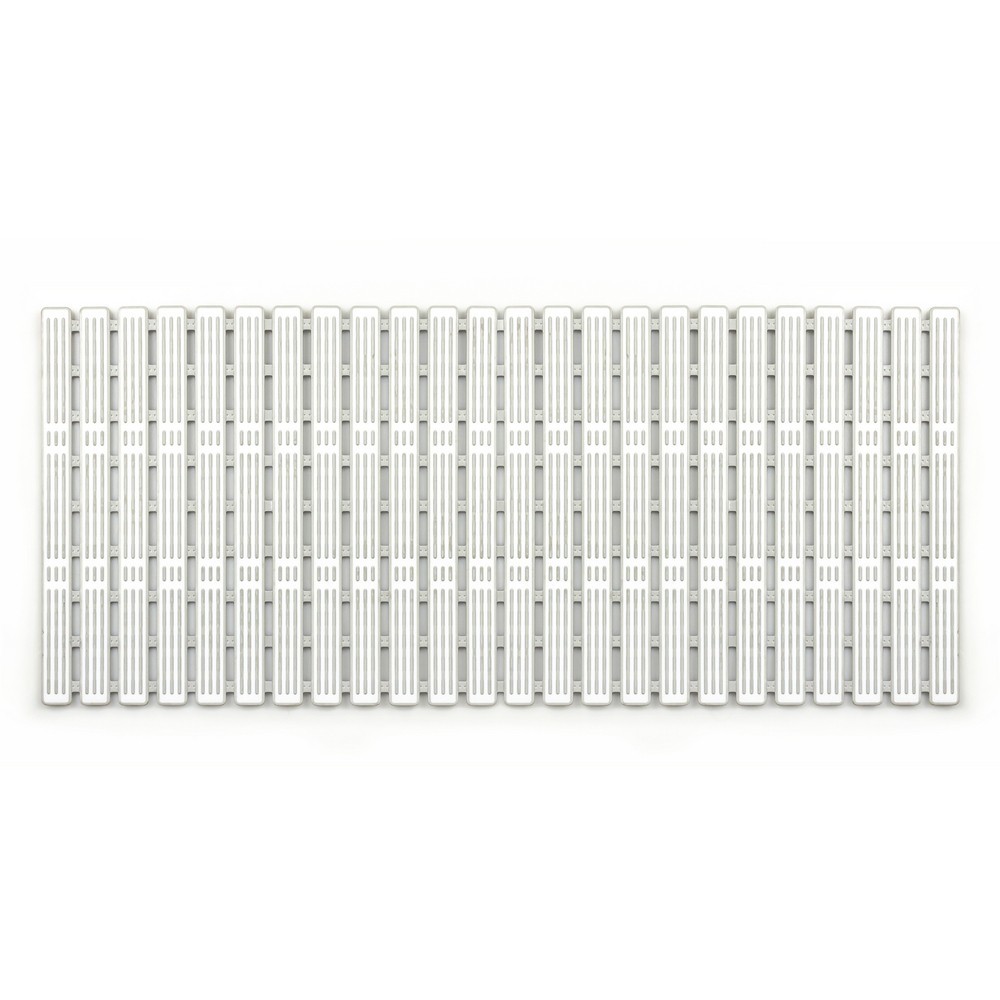 Protišmyková podložka podlhovastého tvaru vyrobená z kombinácie dvoch funkčných materiálov: PP a TPE. Skladá sa z pevných lamiel v elegantnej bielej a šedej farbe a je tak ideálnym doplnkom do moderných interiérov. Podložka perfektne funguje na rovnom povrchu a poskytuje ochranu podlahy pri vystupovaní z vane alebo sprchy. Vybavená prísavkami, ktoré ho bezpečne prichytia k podlahe, zaručuje stabilitu a bezpečnosť užívateľa. Kúpeľňová predložka meria 91 cm na dĺžku a 40 cm na šírku. Prať na 30 stupňov, nežehliť, chemicky nečistiť, nebieliť, nesušiť v sušičke.