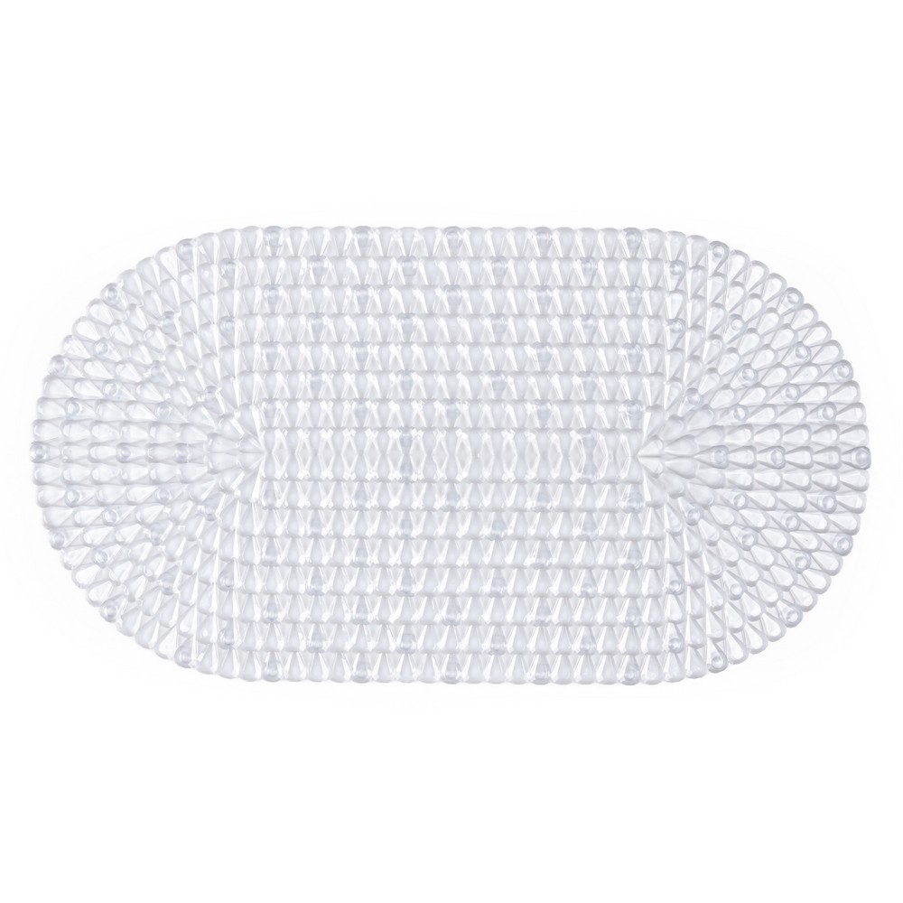 Obdĺžniková protišmyková podložka z priehľadného PVC materiálu, úplne vodeodolná, má moderný dizajn. Skladá sa z malých prvkov v tvare diamantu, ktoré mu dodávajú elegantný a lesklý vzhľad. Prelamovaná štruktúra podložky umožňuje voľné prúdenie vody a zvyšuje jej funkčnosť v kúpeľni. Vďaka prísavkám na dne podložka pevne priľne k povrchu a zaistí tak protišmykovosť a bezpečnosť užívateľa. Jeho rozmery sú 67,5 x 37 cm a je tak ideálnym doplnkom do každej kúpeľne. Prať na 30 stupňov, nežehliť, chemicky nečistiť, nebieliť, nesušiť v sušičke.