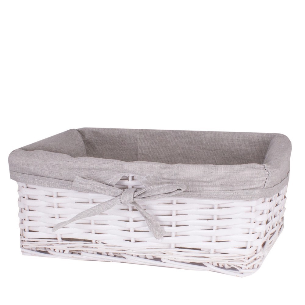 Prútený kôš na stredne veľké predmety. Vnútro je podšité bavlneným plátnom. Vpredu má ozdobnú kravatu v podobe mašle, ktorá mu dodáva kúzlo.