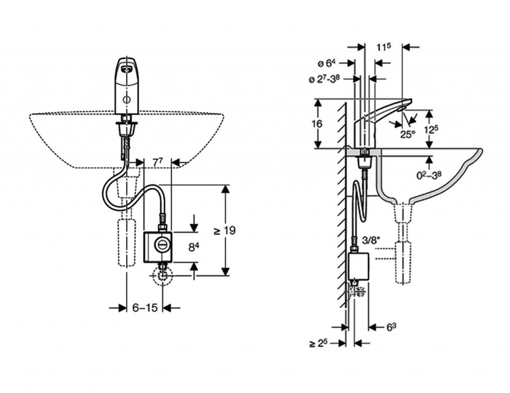 Infračervená elektronická umývadlová batéria typ 185 bez zmiešavača, s generátorom