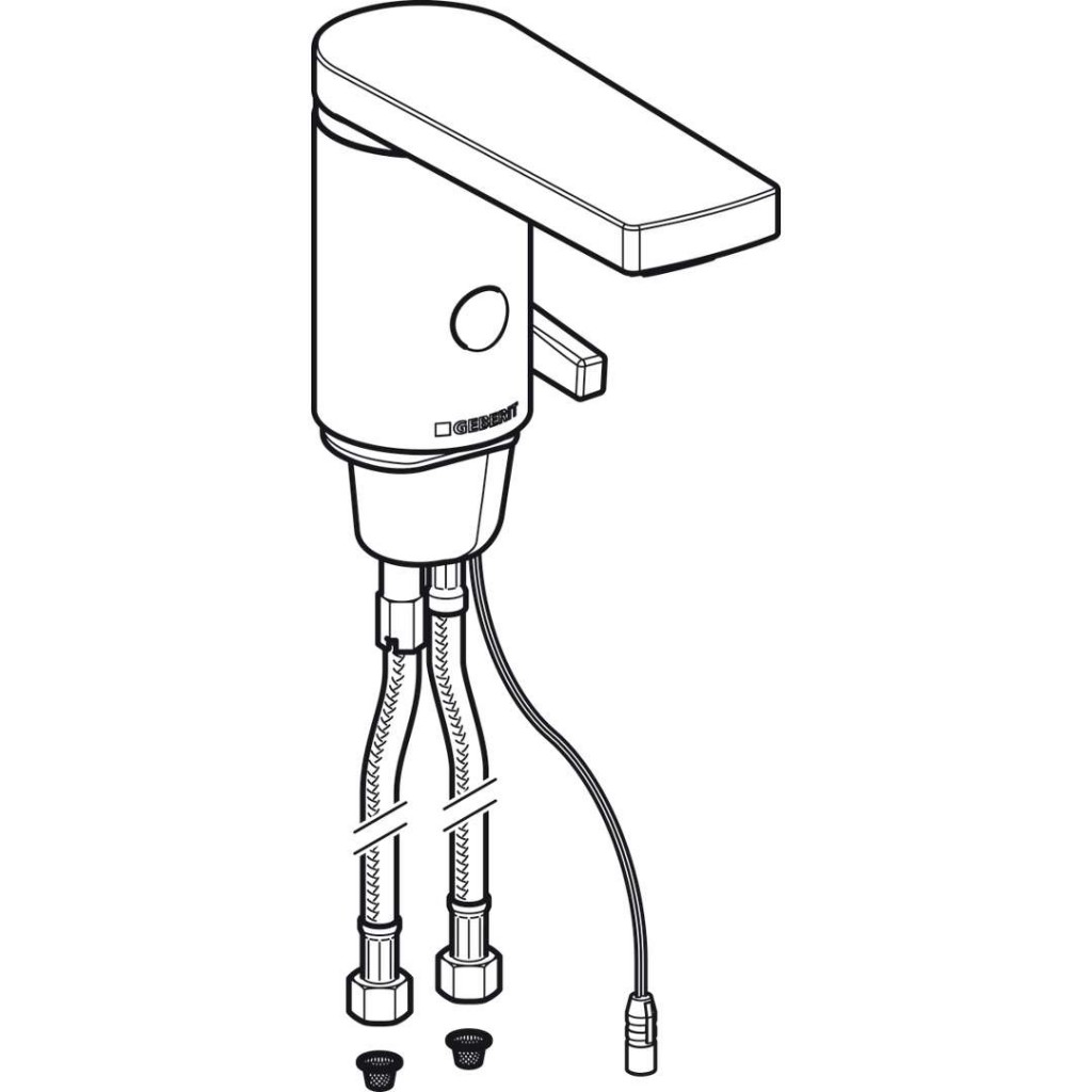Elektronická umývadlová batéria typ 185, napájanie zo siete, bez sieťového zdroja, so zmiešavačom a rukoväťou