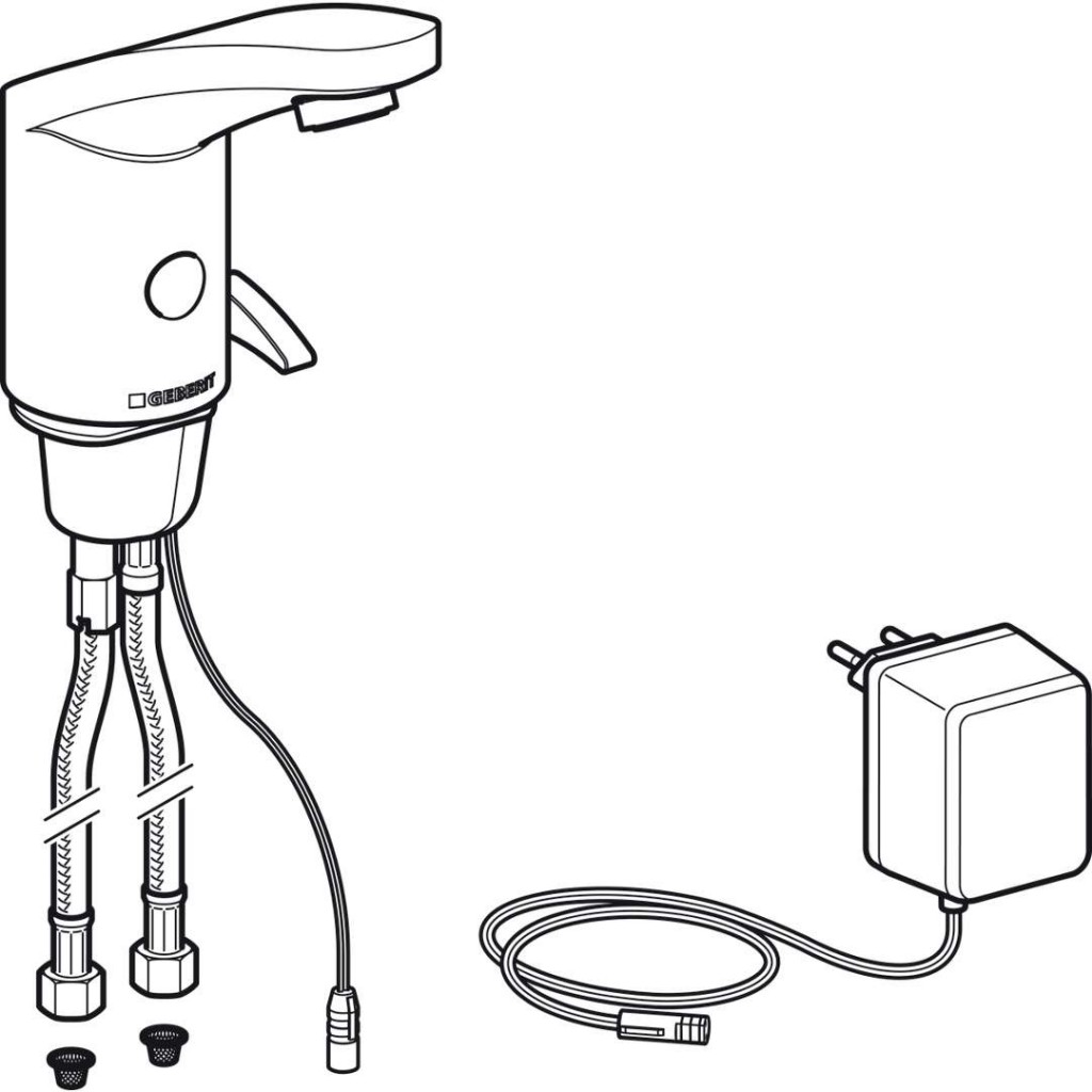 Elektronická umývadlová batéria typ 185, napájanie zo siete, sa zmiešavačom a rukoväťou
