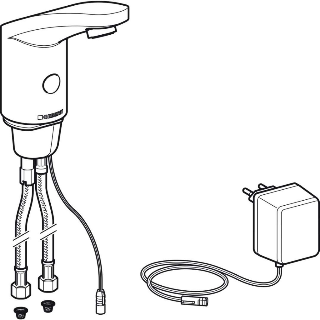 Elektronická umývadlová batéria typ 185, napájanie zo siete, sa zmiešavačom