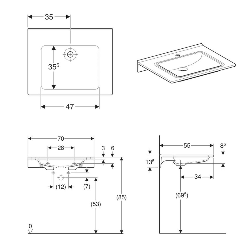Umývadlo Geberit Publica, hranatý dizajn, s výrezmi