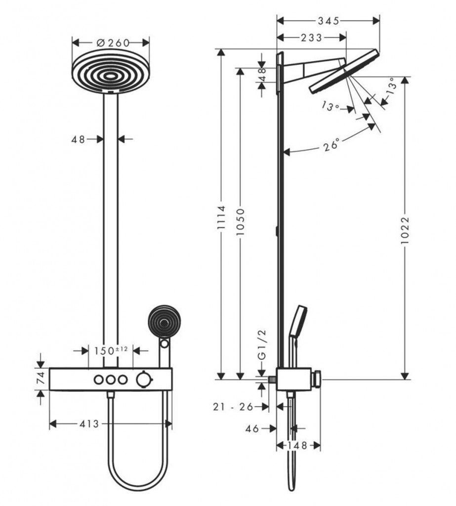 - hlavová sprcha sklopná o 13-39 °