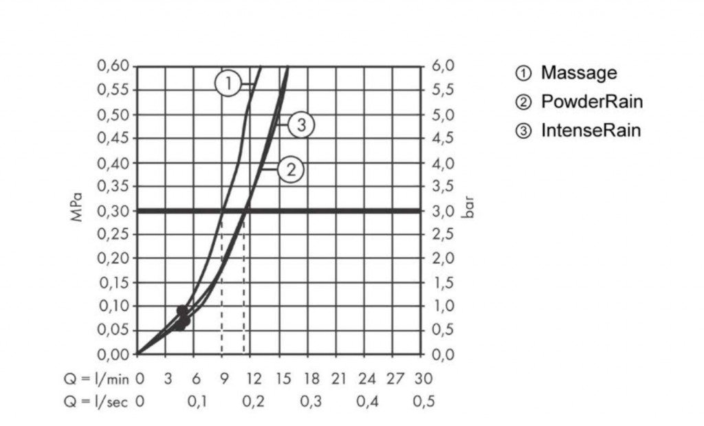 - sprchovací prúd: PowderRain, IntenseRain, masážny prúd