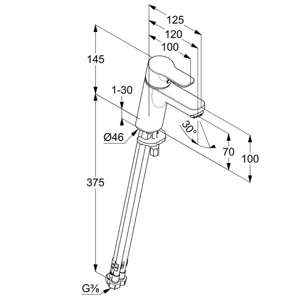 - flexibilné prípojky G 3/8