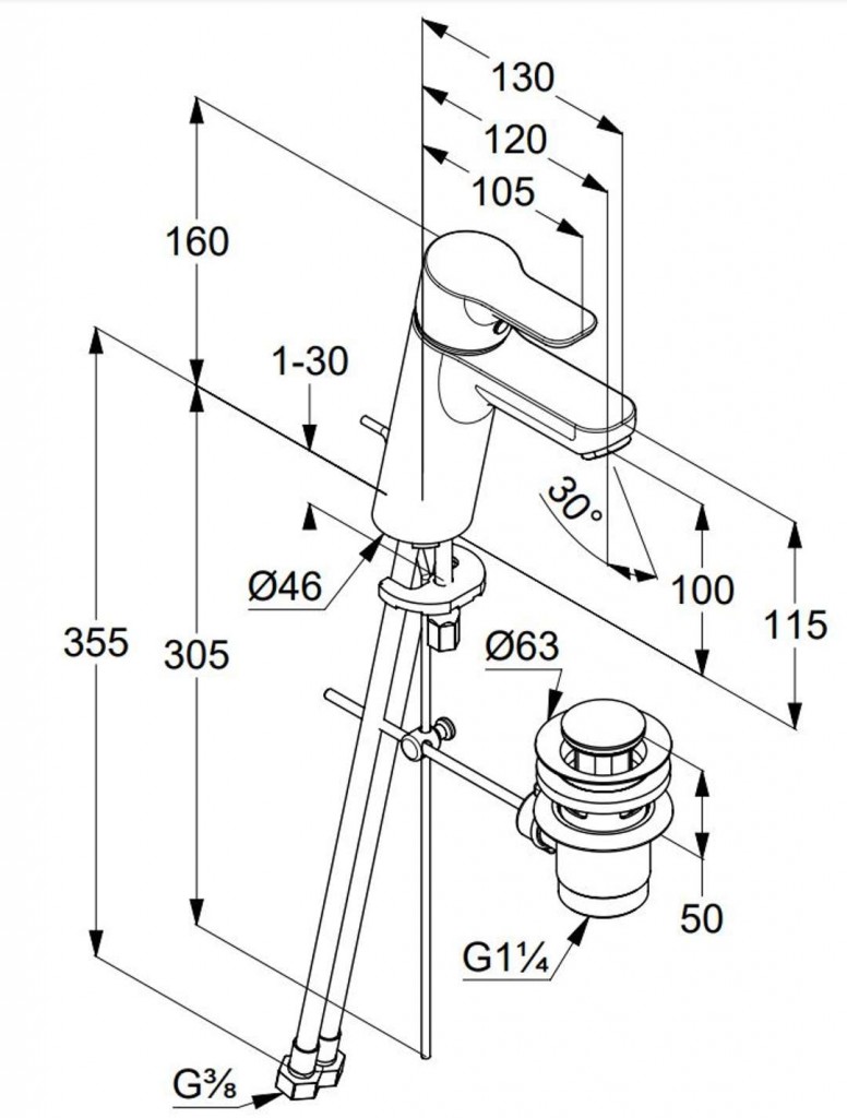 - flexibilné prípojky G 3/8