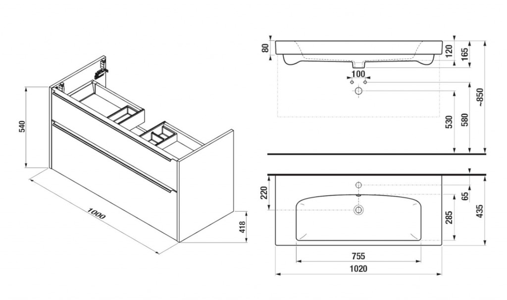 - rozmery bez umývadla: 1000 x 540 x 418 mm