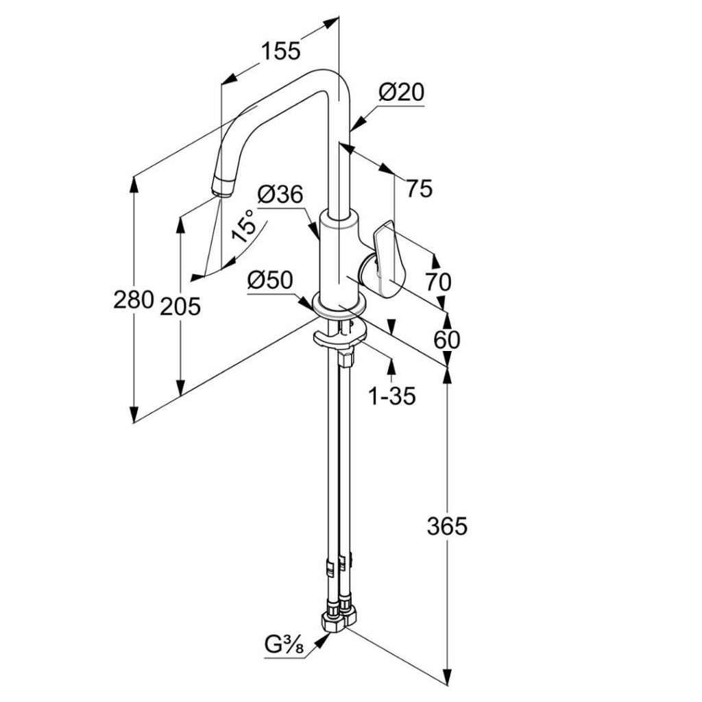 - flexibilné prípojky G 3/8