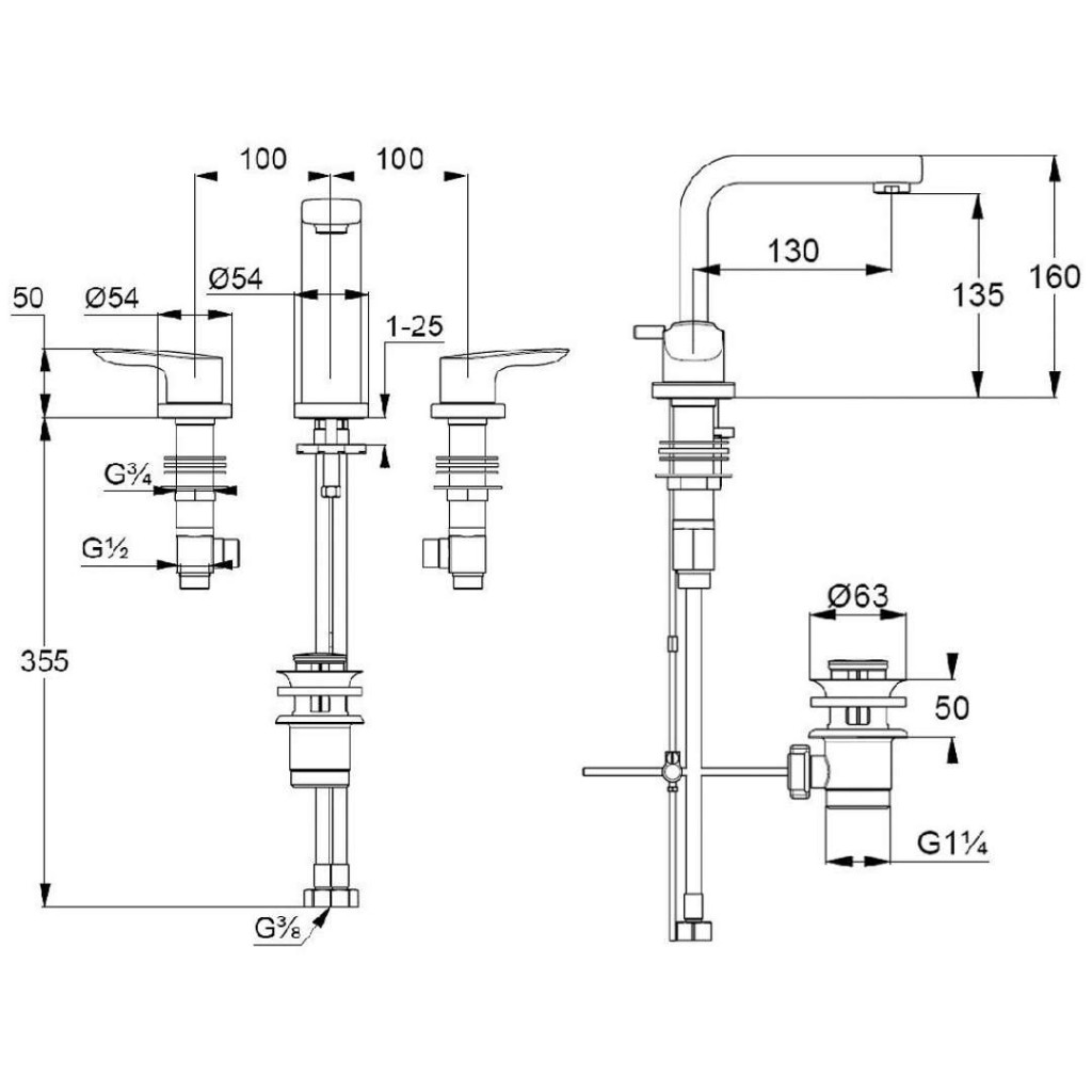 Umývadlová trojotvorová batéria s odtokovou súpravou
