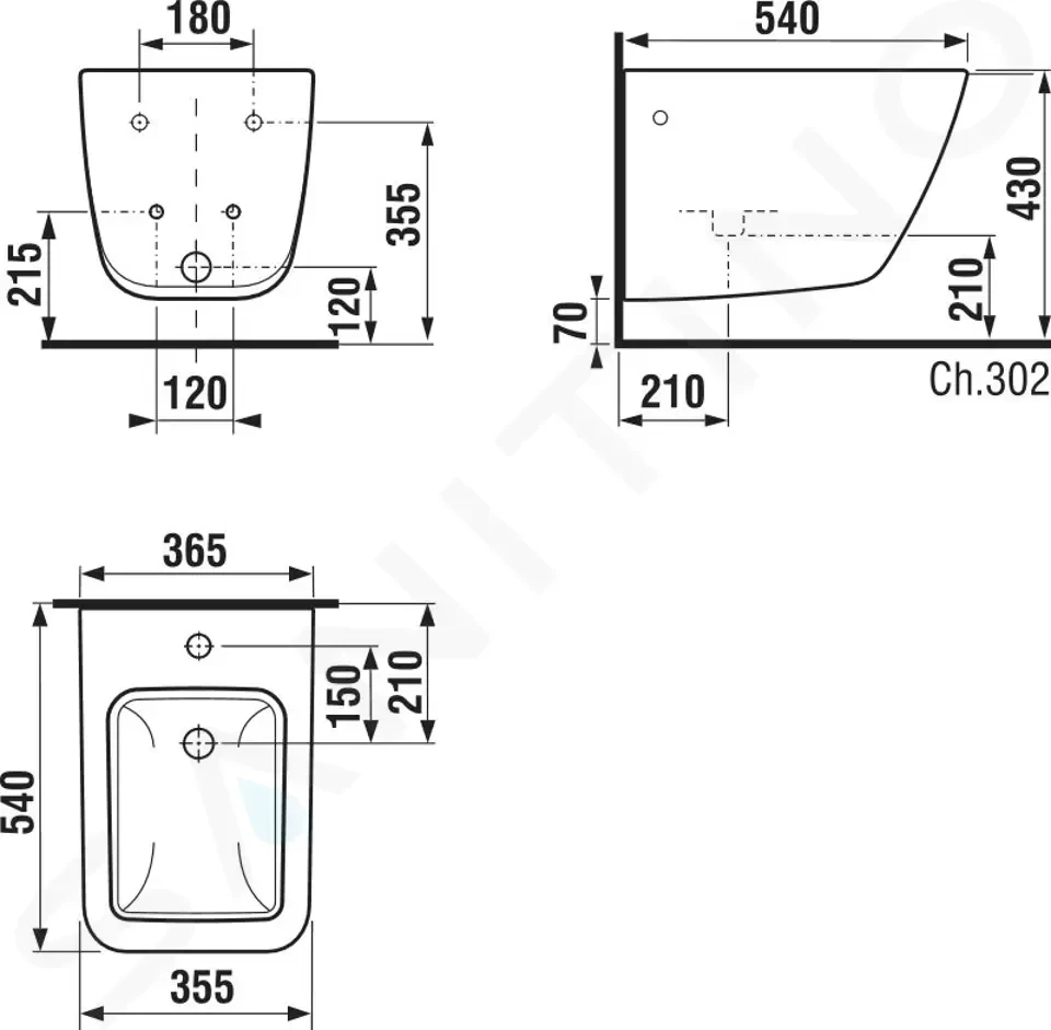 Bidet závesný s otvorom pre batériu, s postrannými otvormi