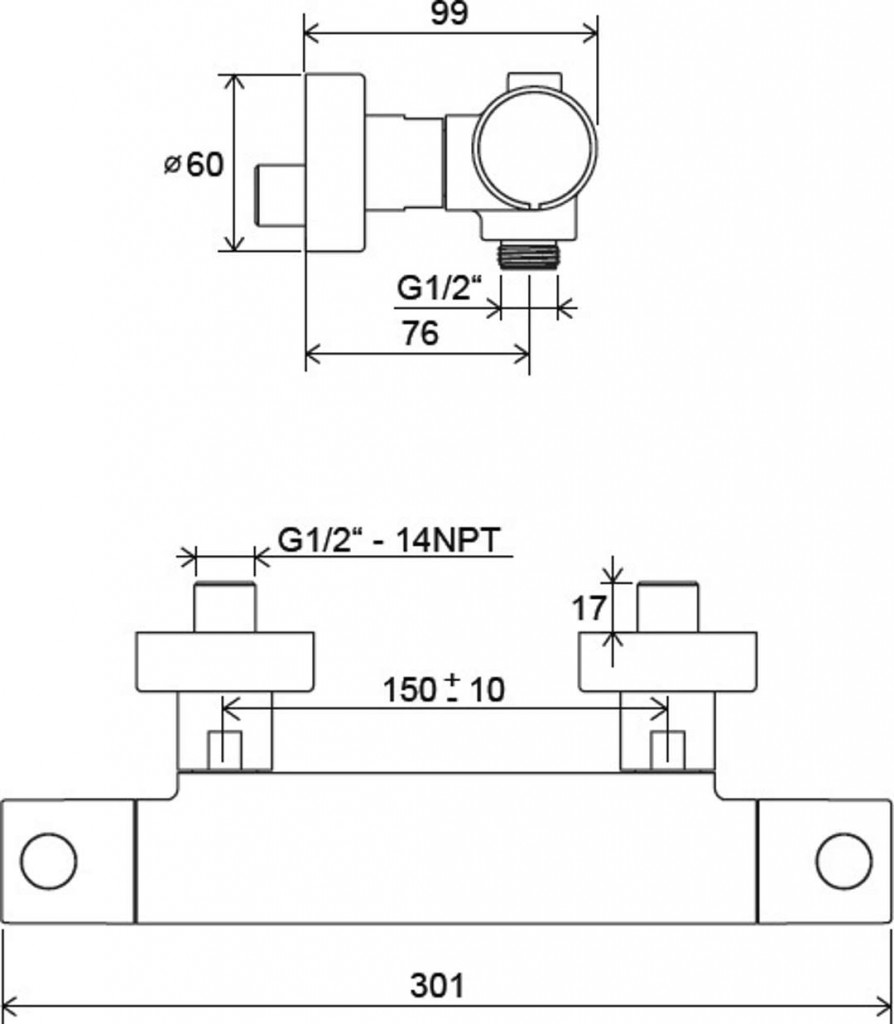 Termostatická sprchová batéria bez príslušenstva