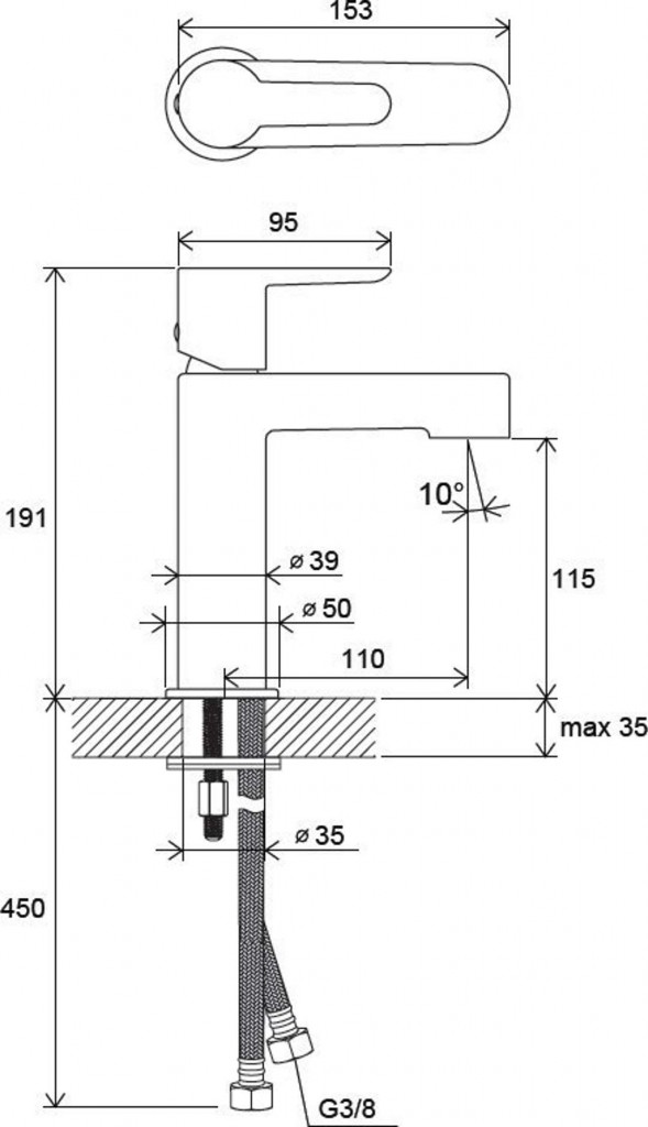 - pripojovacie hadičky: flexibilný 400 mm, priemer G3 / 8