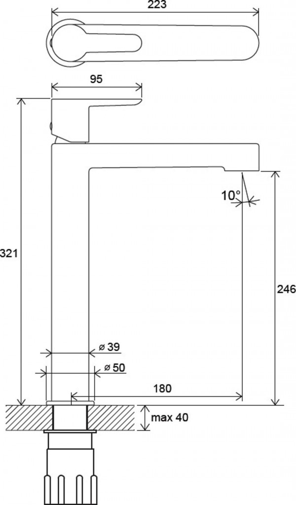 Páková umývadlová batéria vhodná k umývadlám na dosku