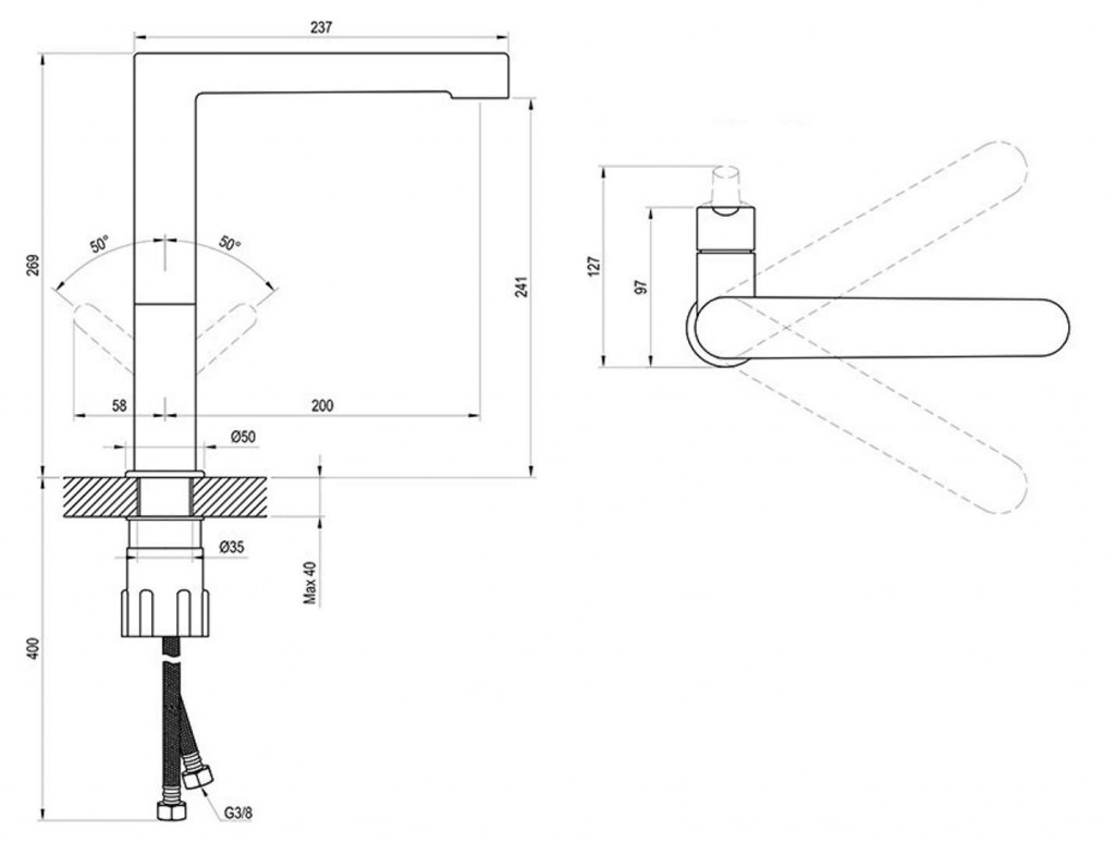 - flexibilné pripojovacie hadičky 400 mm, priemer G3/8