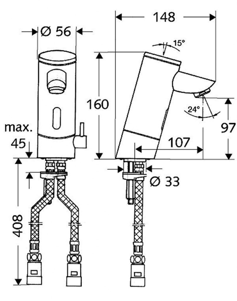 - maximálna teplota vody 70 ° C (krátkodobé využitie)