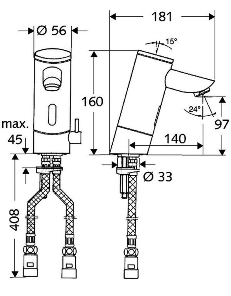 (Vysokotlaková zmiešaná voda) batériový prevádzka 9 V, umývadlová armatúra s predĺženým výtokovým ramienkom 140 mm