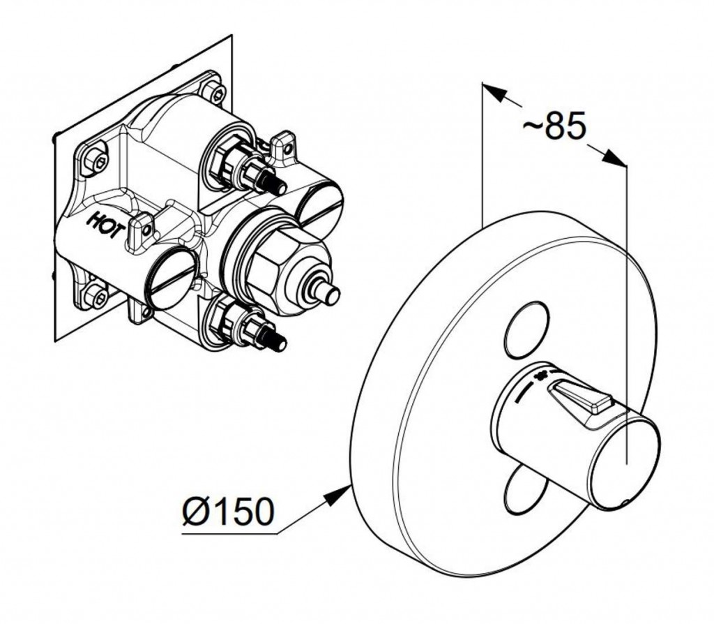 - termostatická keramická kartuša s reguláciou prietoku vody