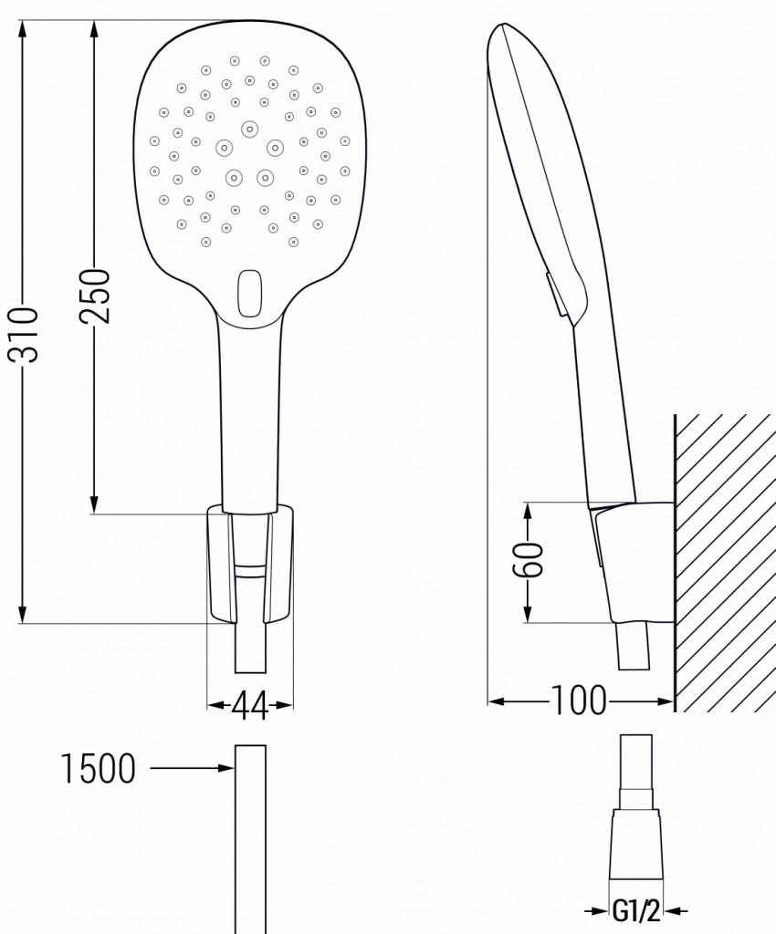 Držiak sprchy od výrobcu MEXEN je určený na inštaláciu na stenu. Držiak je vyrobený z plastu s povrchovou úpravou rôznych farebných prevedení. Rozmery držiaka sú: šírka 50mm, výška 60mm a hĺbka od steny je 52mm.